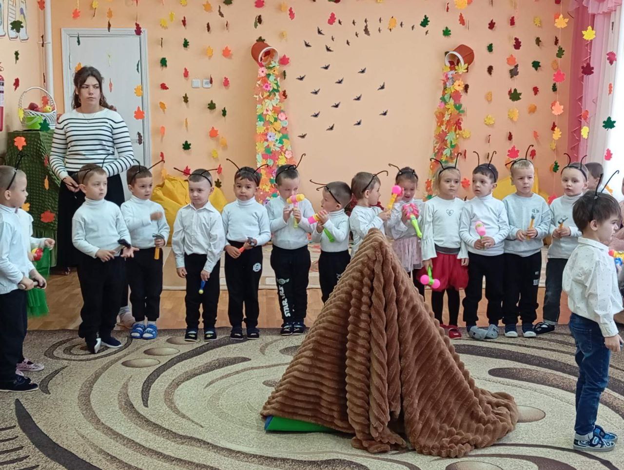У наш садок також завітала Чарівна Осінь. Вихователі та музичний керівник зуміли створити неповторну атмосферу свята та поринути разом зі своїми вихованцями в неповторний осінній колорит в піснях, таночках та неповторних індивідуальних номерах, в яких діти показали свої творчі здібності, а педагоги свою майстерність по підготовці дітей до свята, передати настрій осінньої пори, коли природа готується до зими.